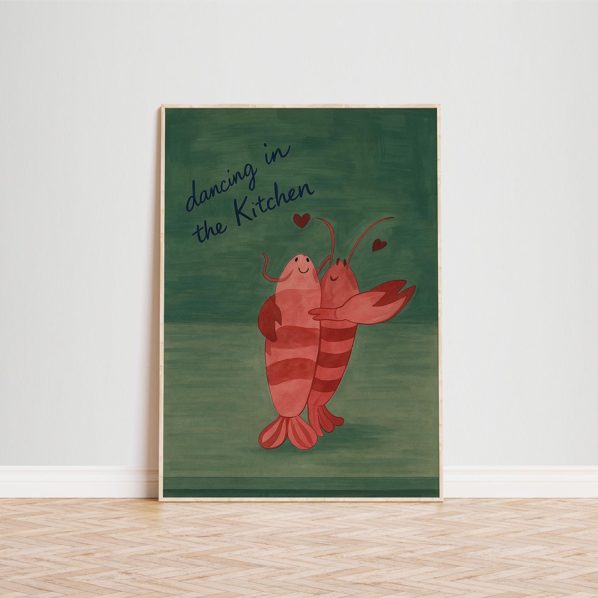 Romantic Lobster Wall Art – Cute Kitchen Decor | Dancing Lobster Poster Print