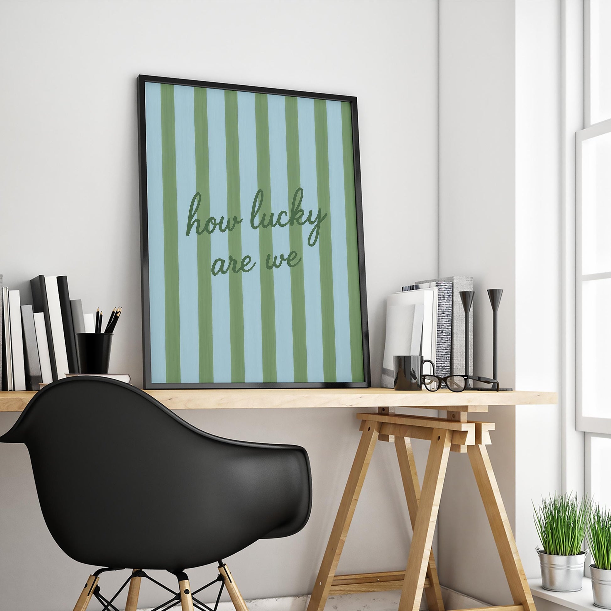 Romantic Quote Poster – Green Striped Print With Elegant Script | Minimalist Romance Decor