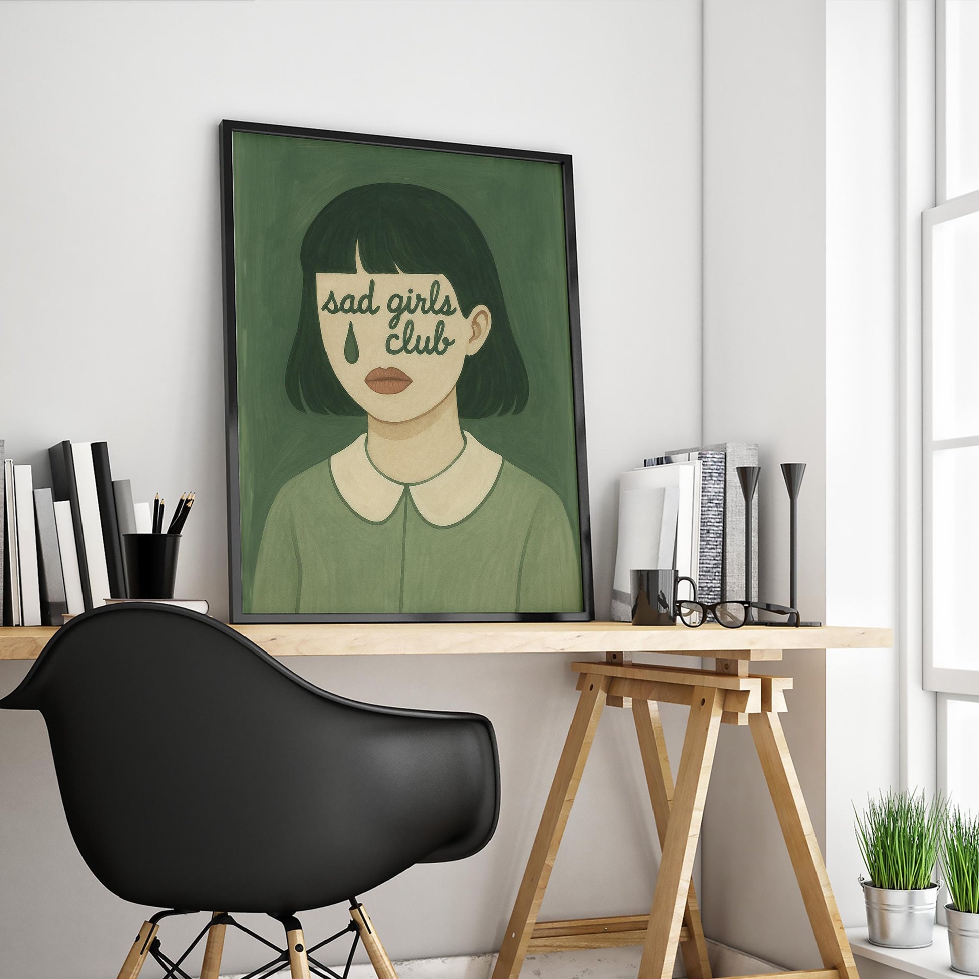 Sad Girls Club Poster – Moody Feminist Retro Wall Art With Vintage Illustration Style