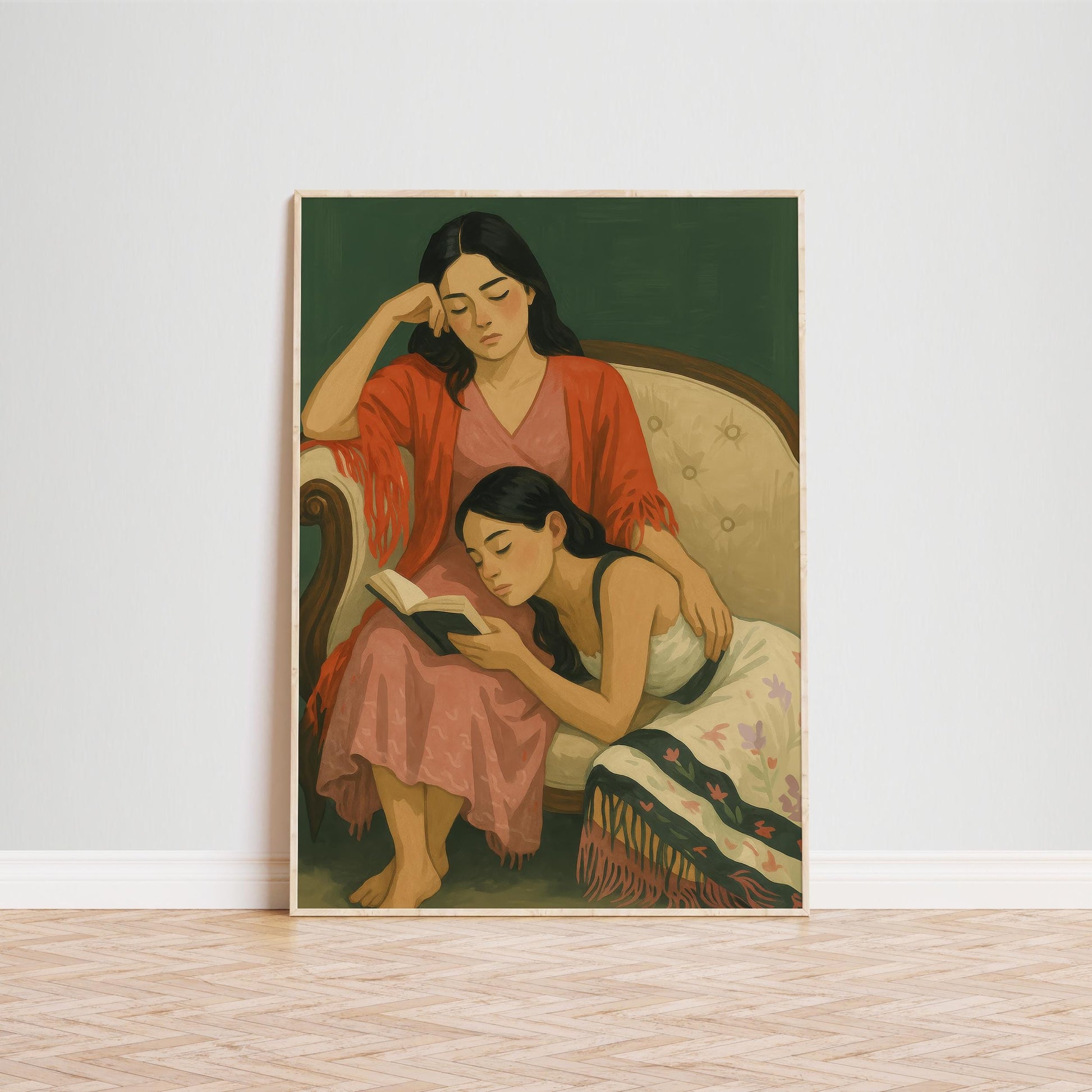 Sapphic Art Print – Soft Feminine Poster | Intimate Reading Moment Wall Decor