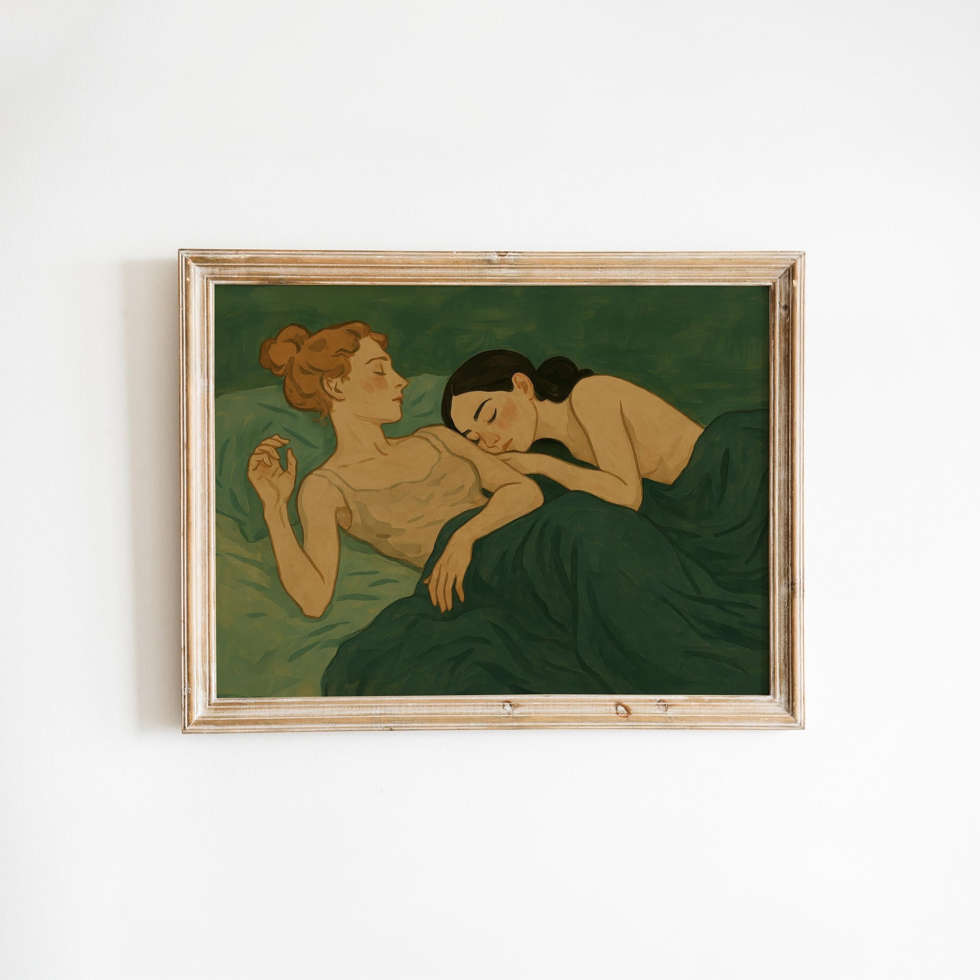 Sapphic Romance Art – Soft Lesbian Couple Print | Intimate Lovers Artwork