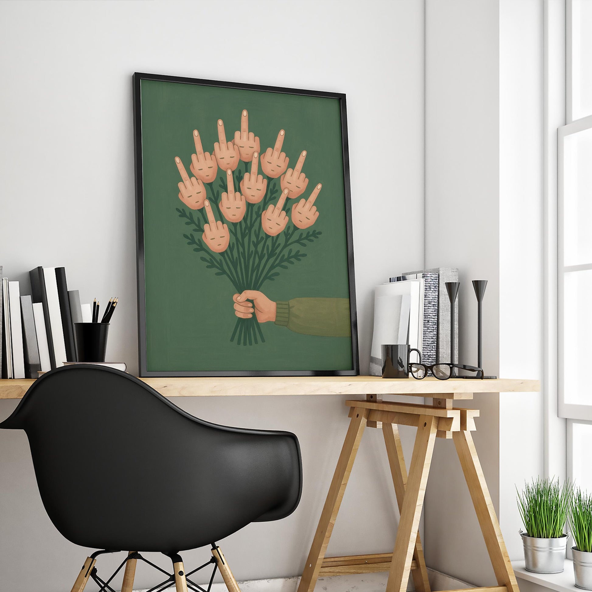 Sarcastic Wall Art – Bold Statement Art | Cheeky Flower Bouquet Poster