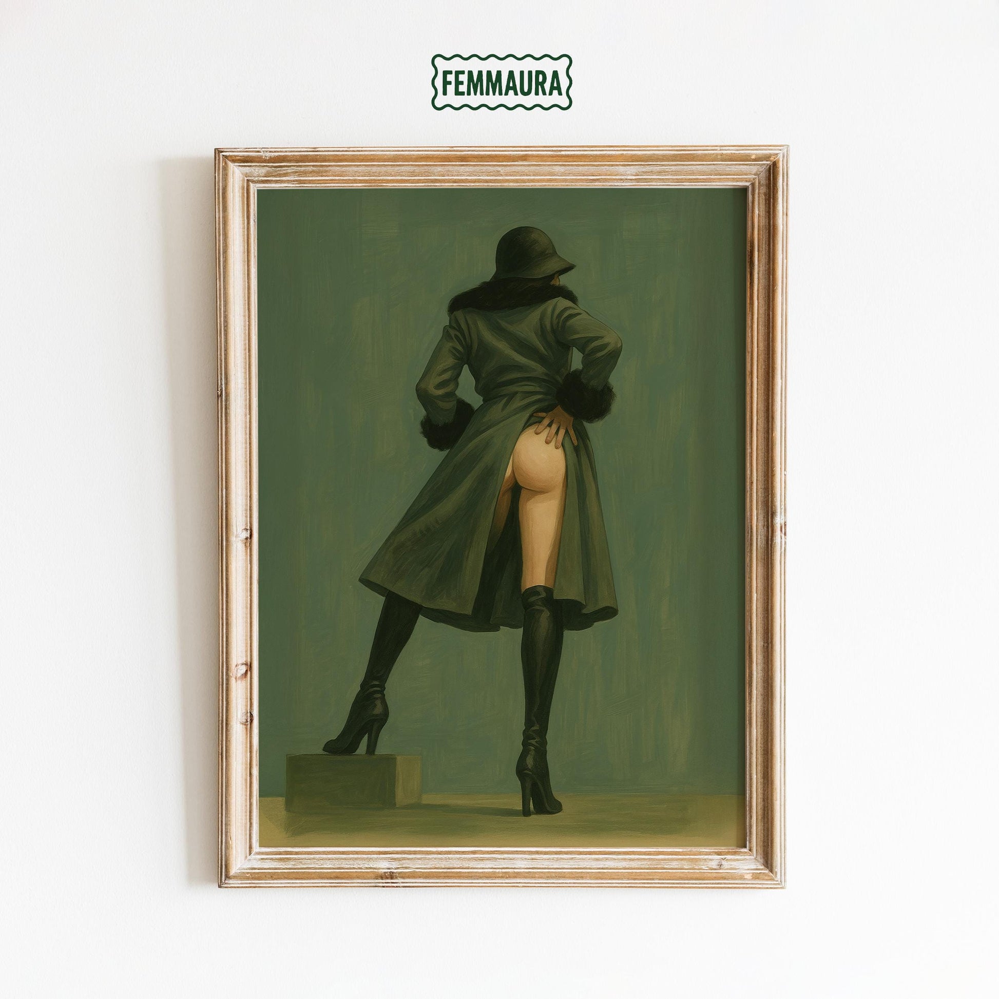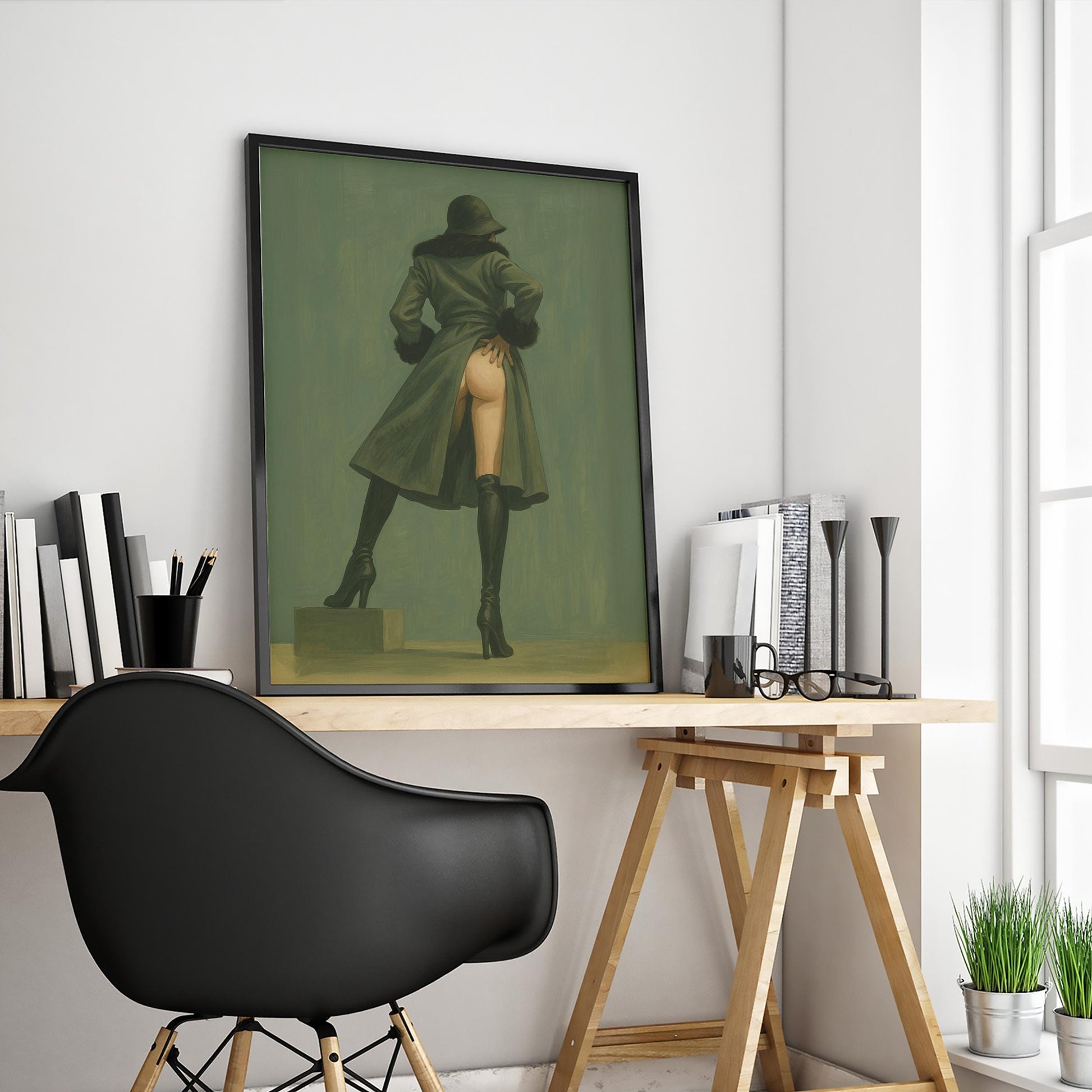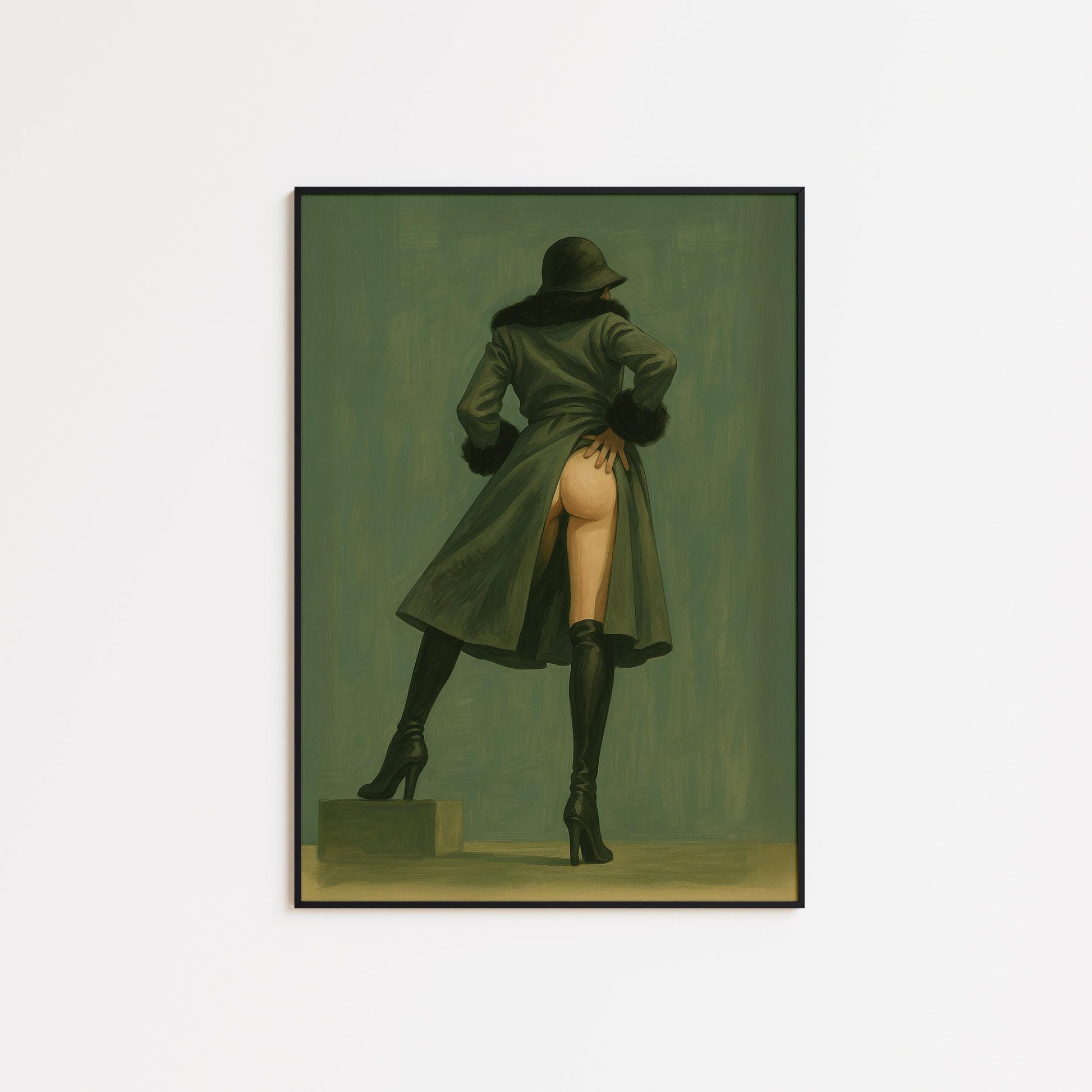 Sensual Retro Art Print – Bold Feminine Wall Poster With Vintage Coat Illustration