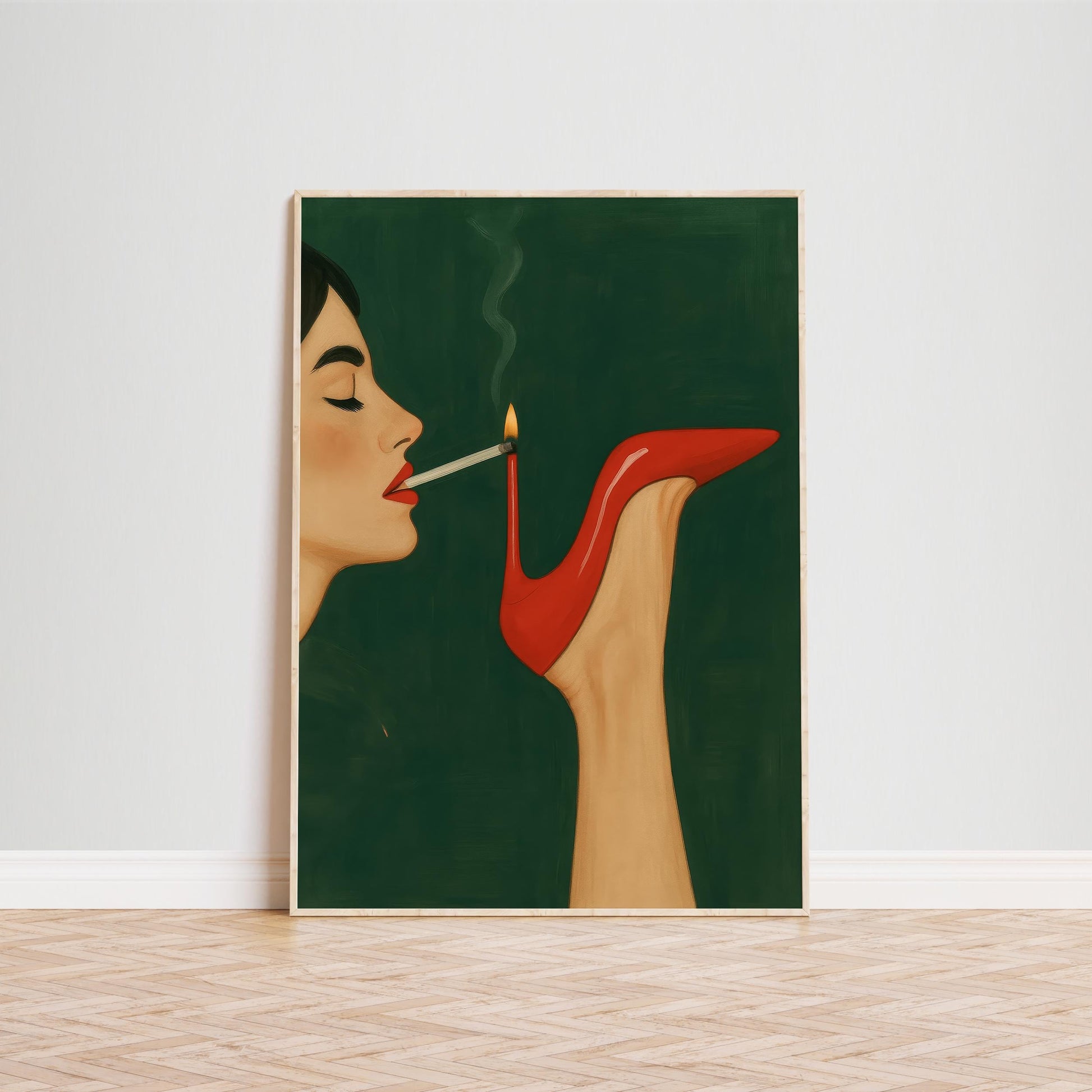 Smoking Heel Poster – Bold Retro Artwork With Red Stiletto Print