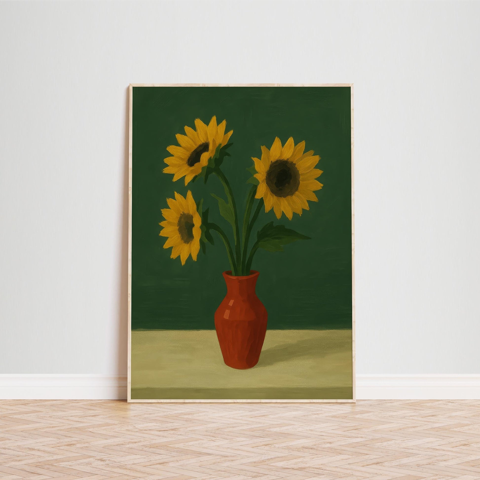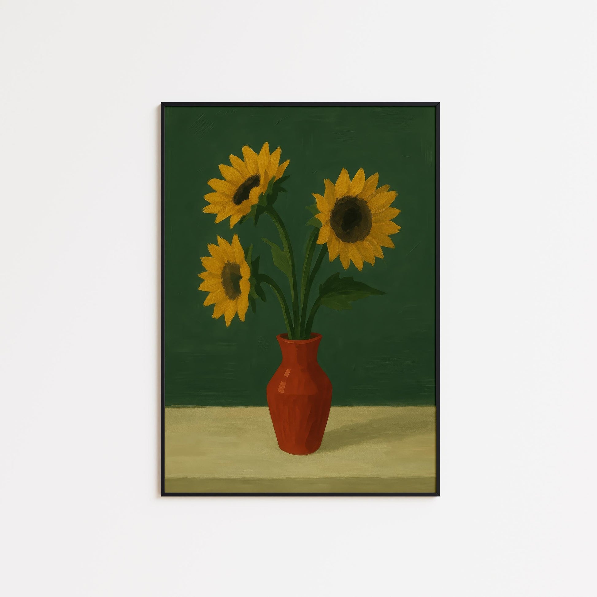 Sunflowers Wall Art – Bright Floral Print With Red Vase Artwork | Rustic Kitchen Decor