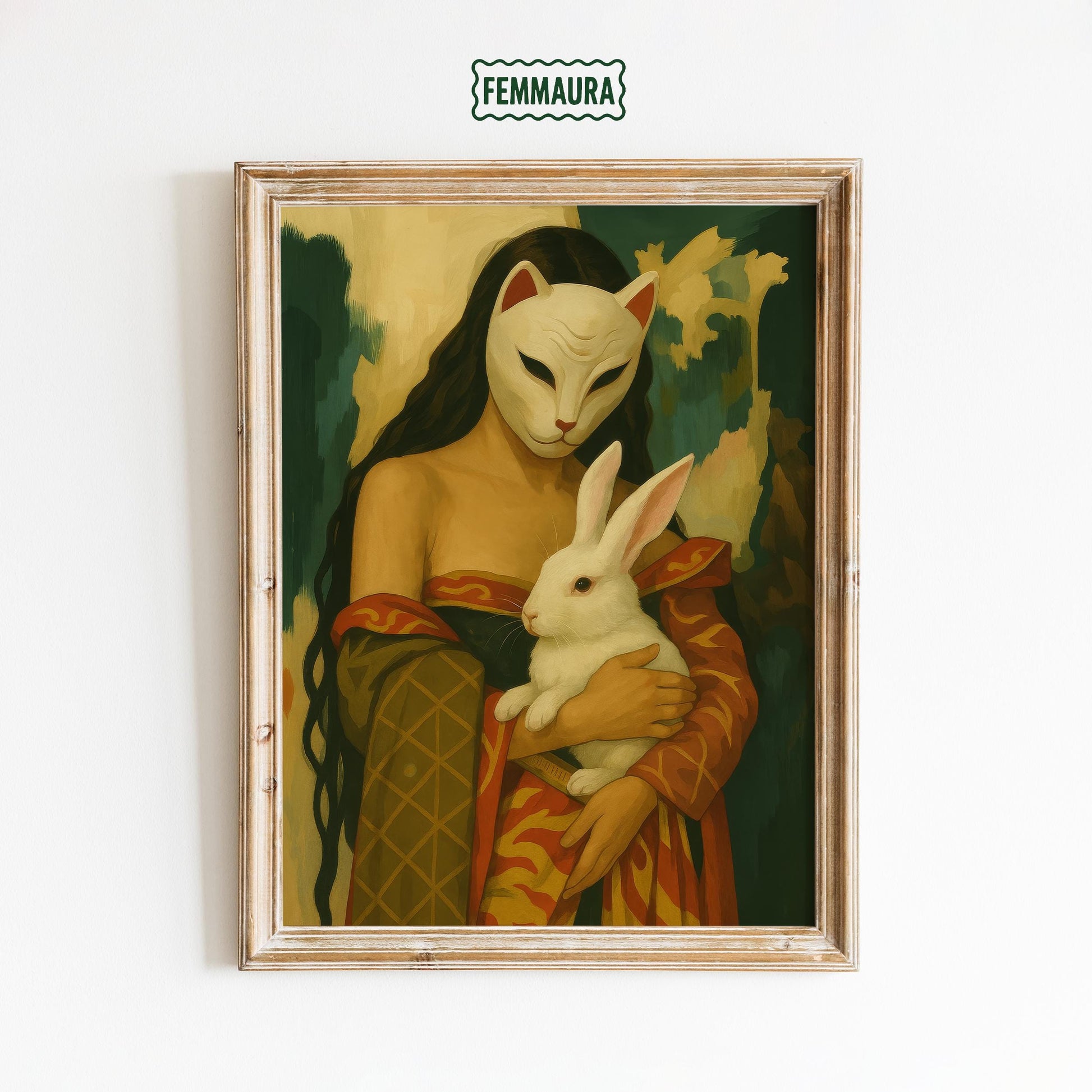 Surreal Femme Art Print – Gothic Renaissance Masked Woman & Symbolic Rabbit