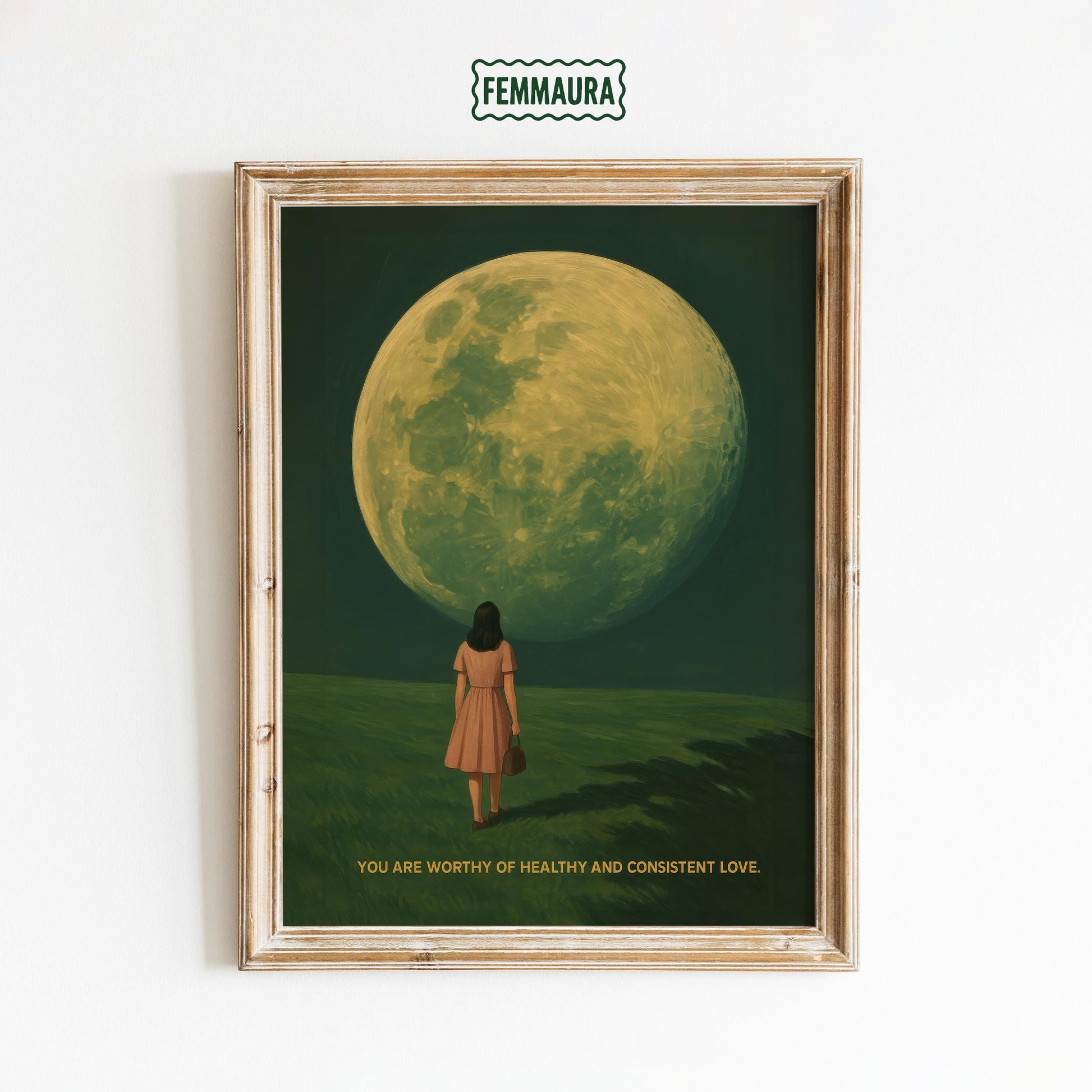 Surreal Moon Art Print – Celestial Wall Decor With Inspirational Affirmation