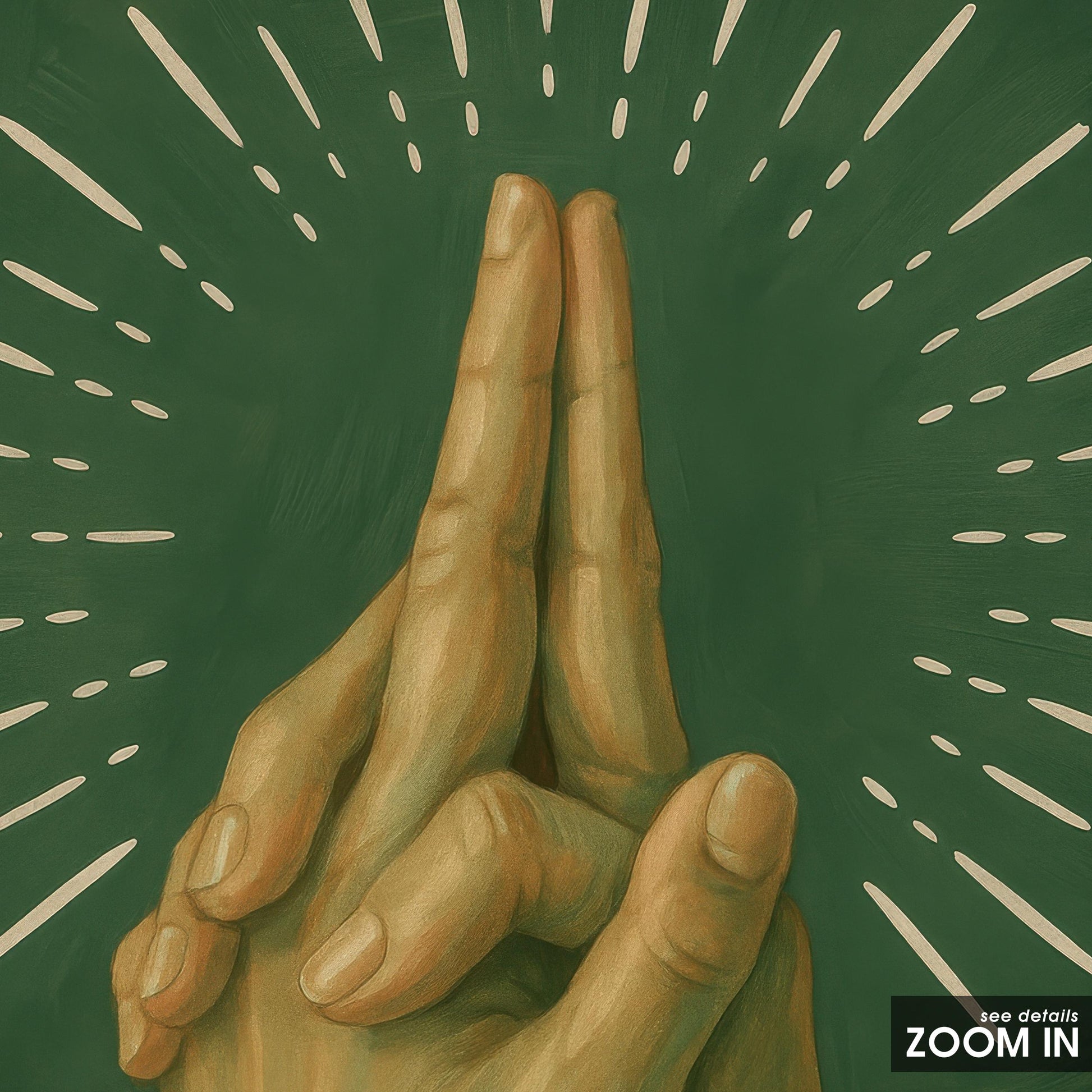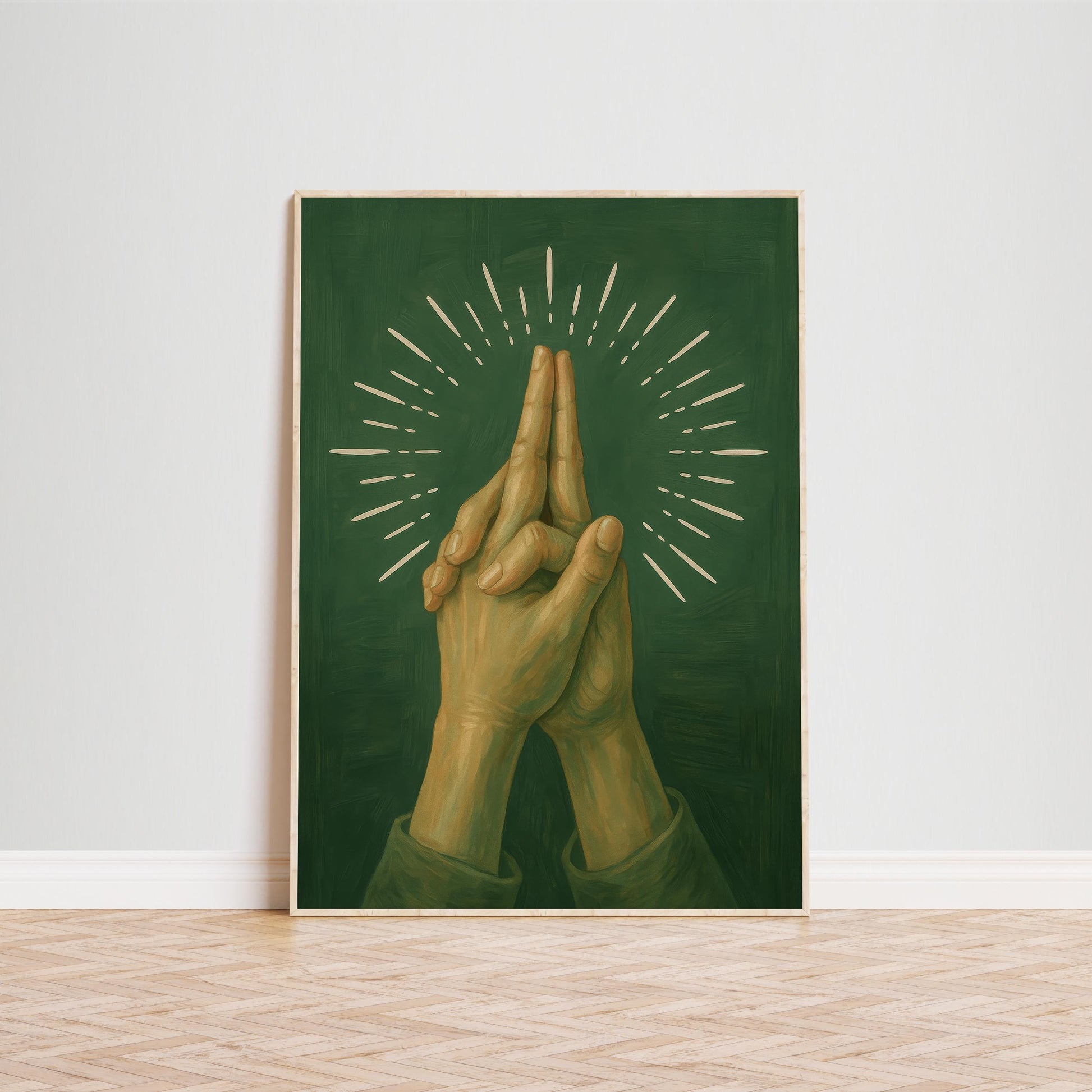 Surreal Prayer Art – Sensual Layered Praying Hands Print | Golden Beams