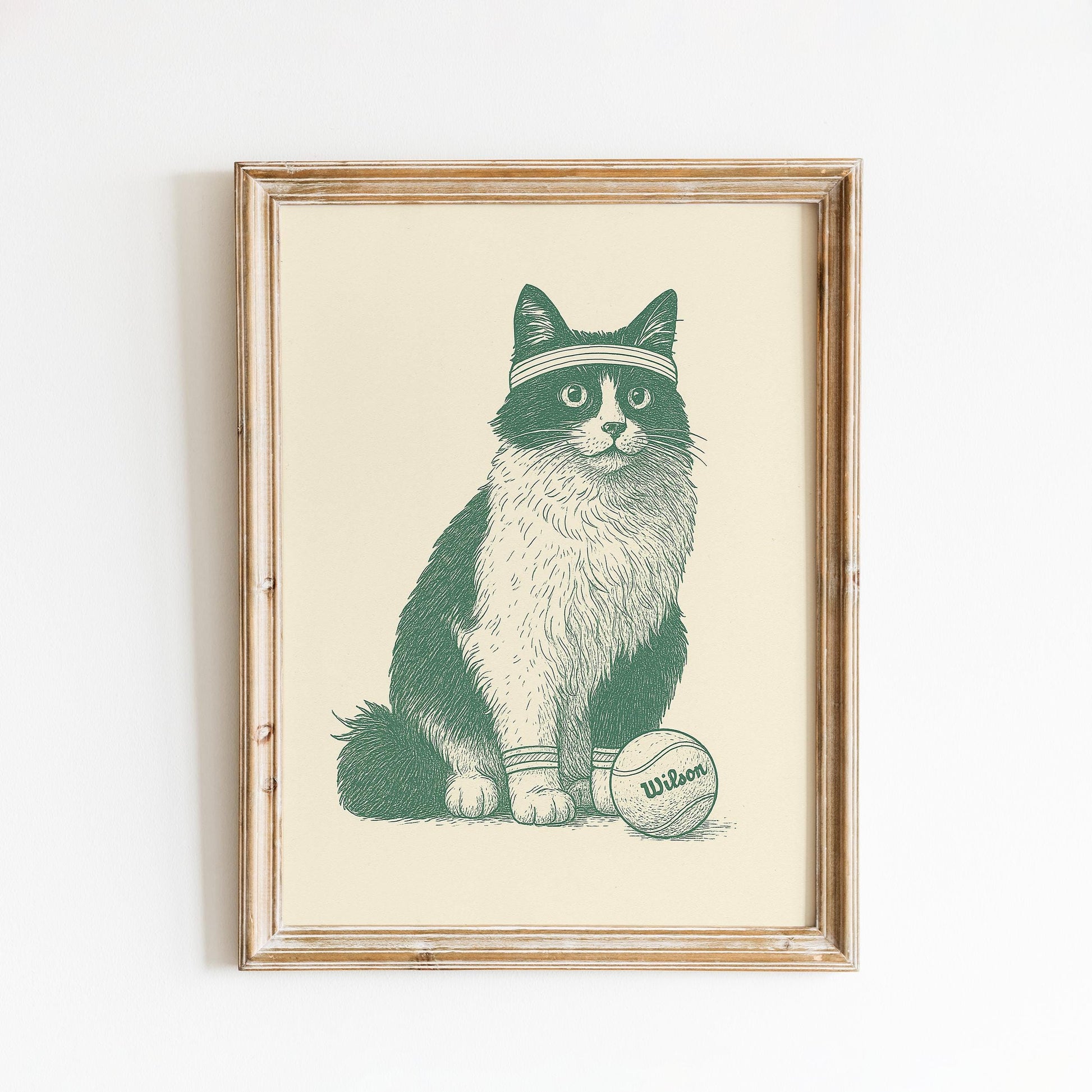 Tennis Cat Poster – Funny Vintage Animal Illustration, Sports Lover Wall Art