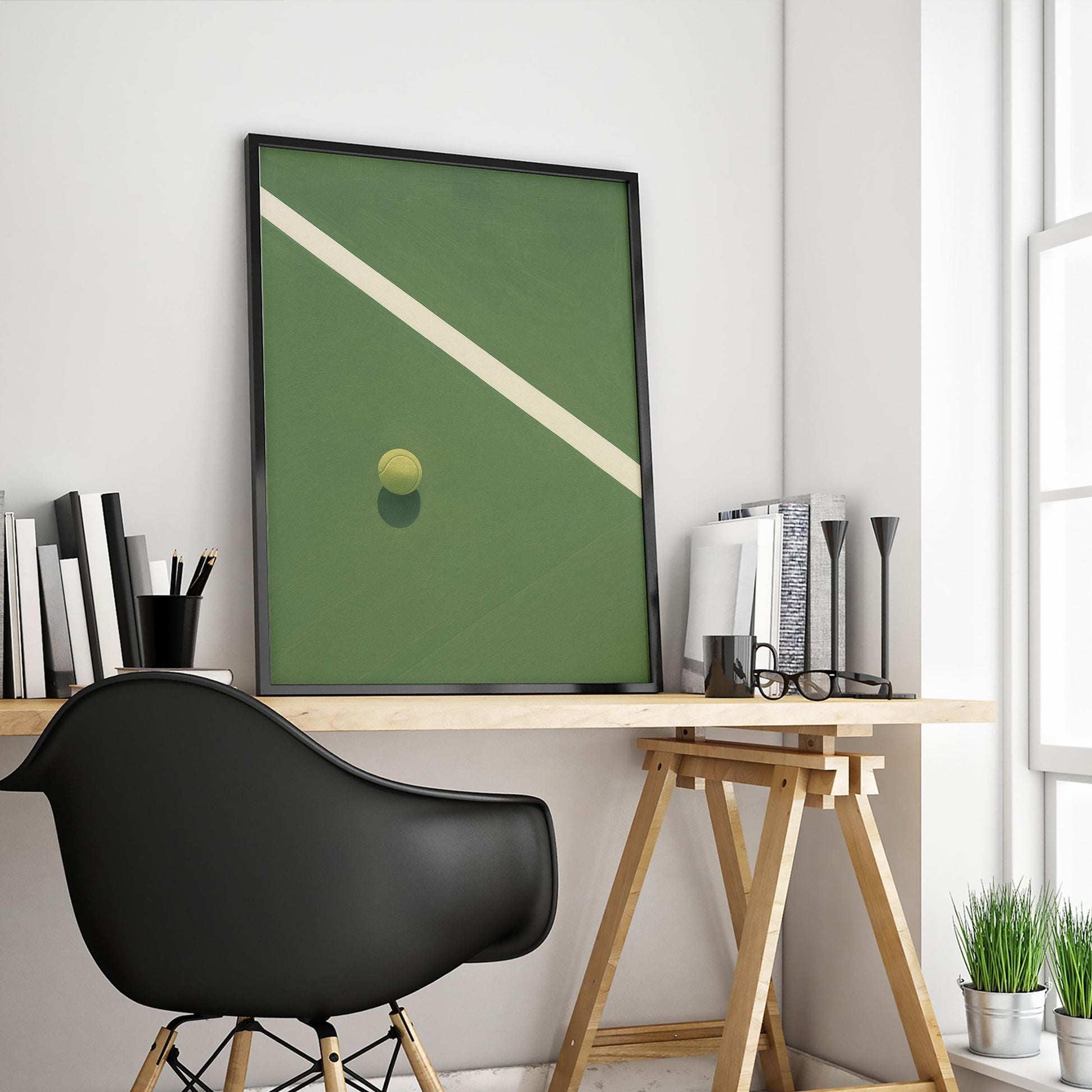 Tennis Court Poster – Minimalist Sports Art Print | Green Gouache Style Wall Decor