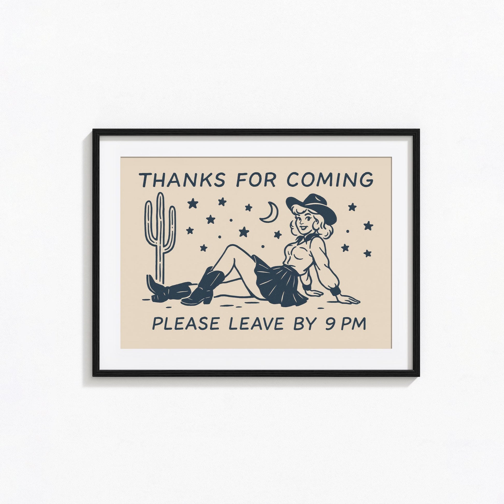 Thanks For Coming, Please Leave By 9 PM – Funny Cowgirl Poster