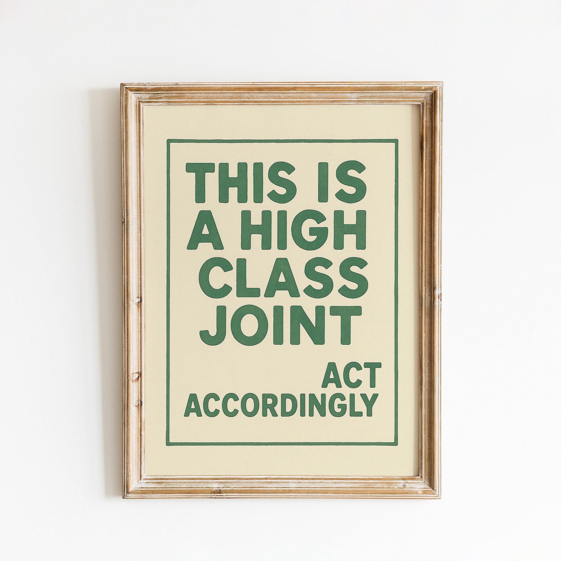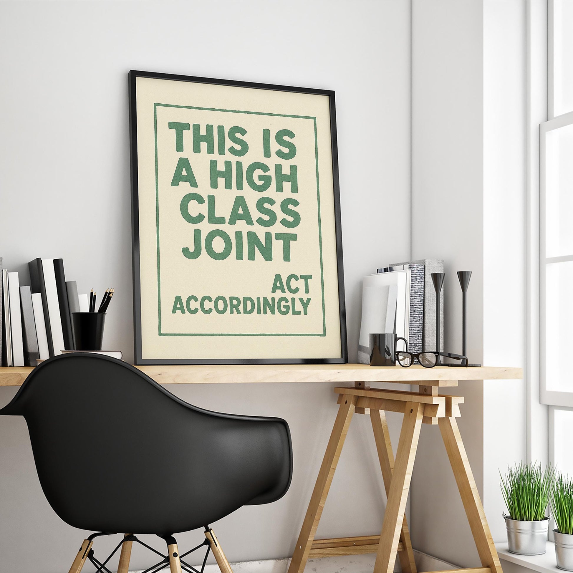 This Is a High Class Joint Poster – Funny Retro Typography Print, Minimalist Wall Art