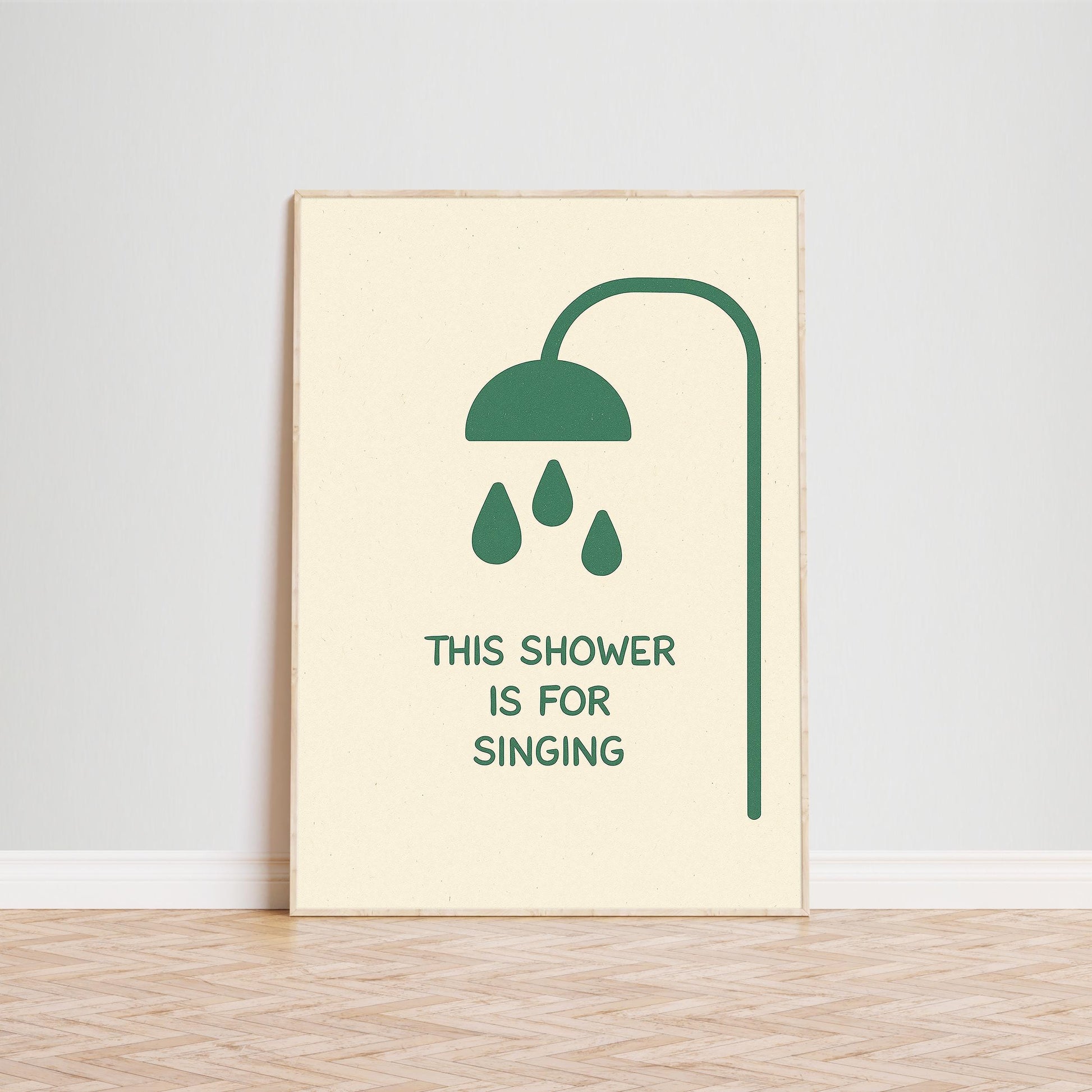This Shower Is For Singing Poster – Funny Bathroom Wall Art in Minimal Green