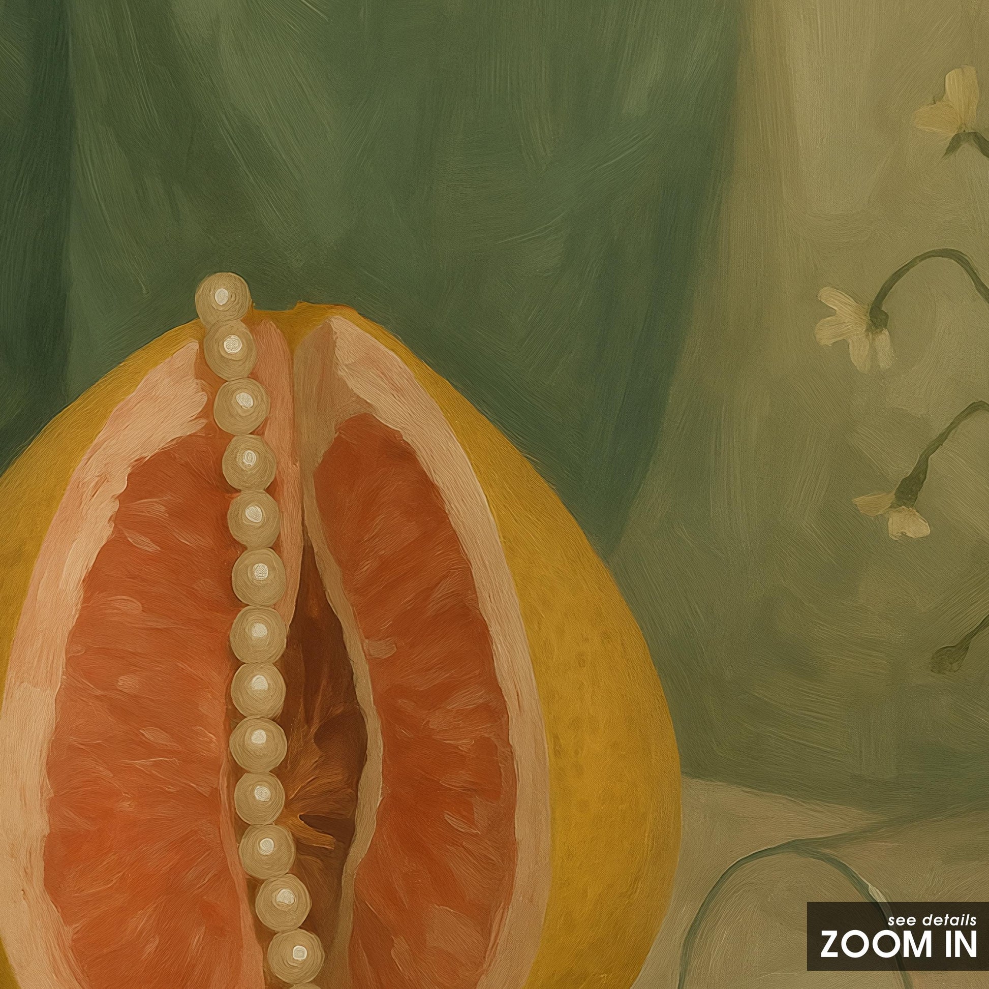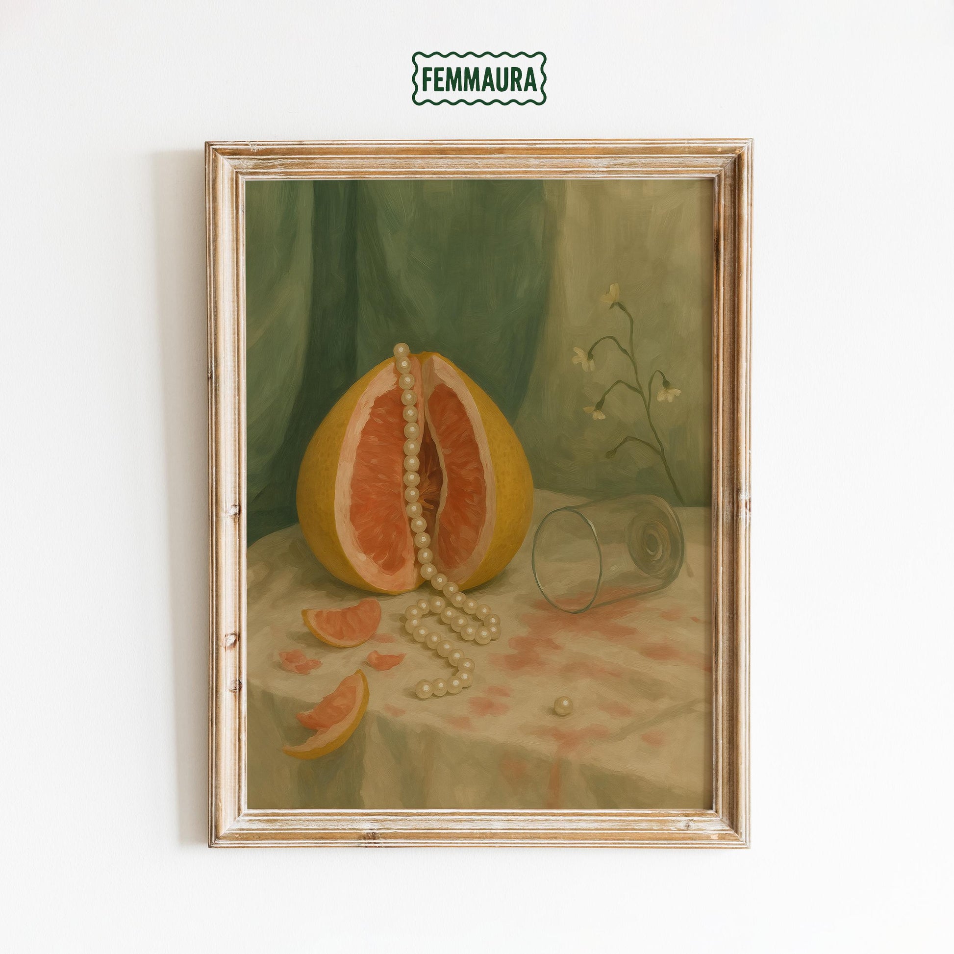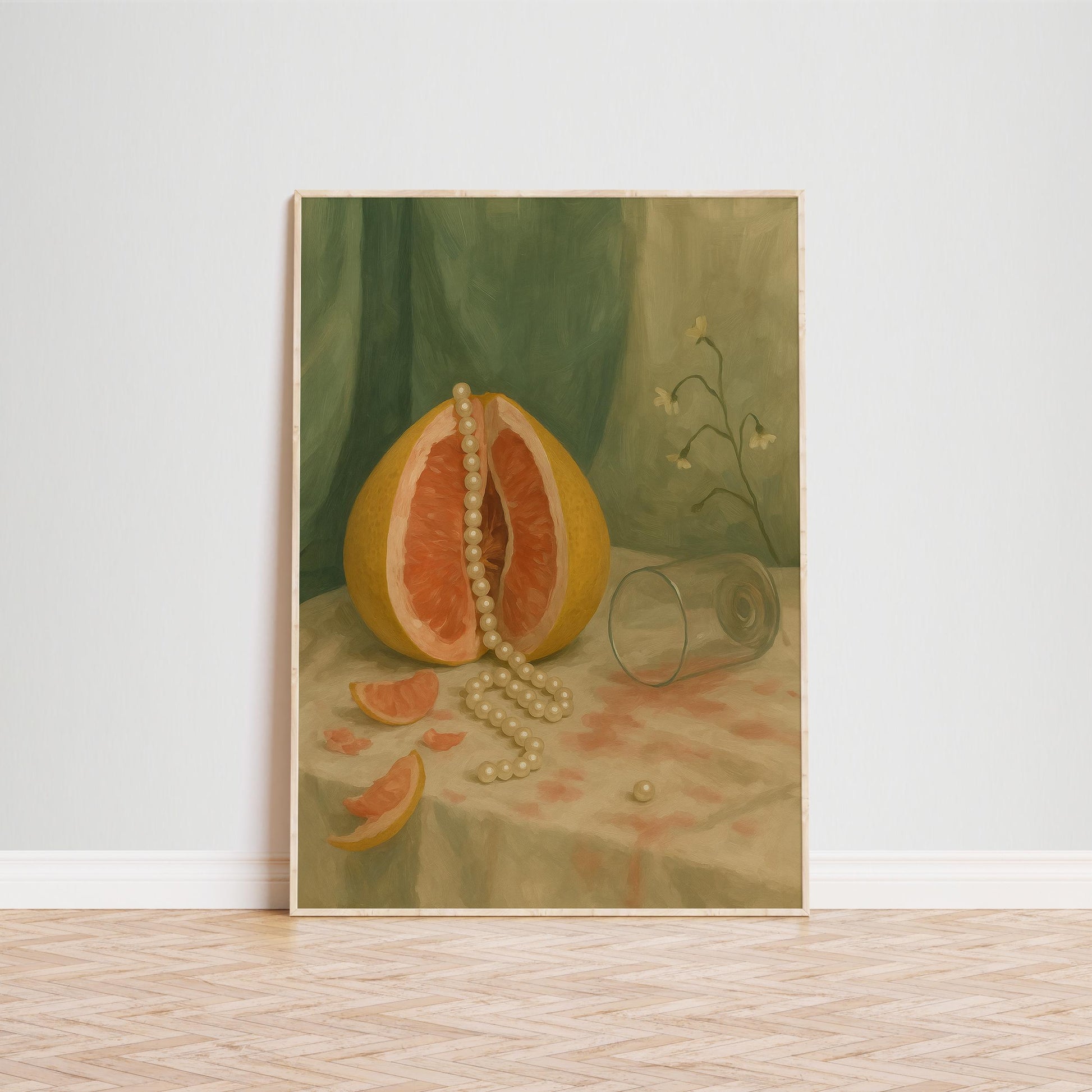 Vintage Botanical Wall Art – Grapefruit Still Life Print with Pearls for Dining Room
