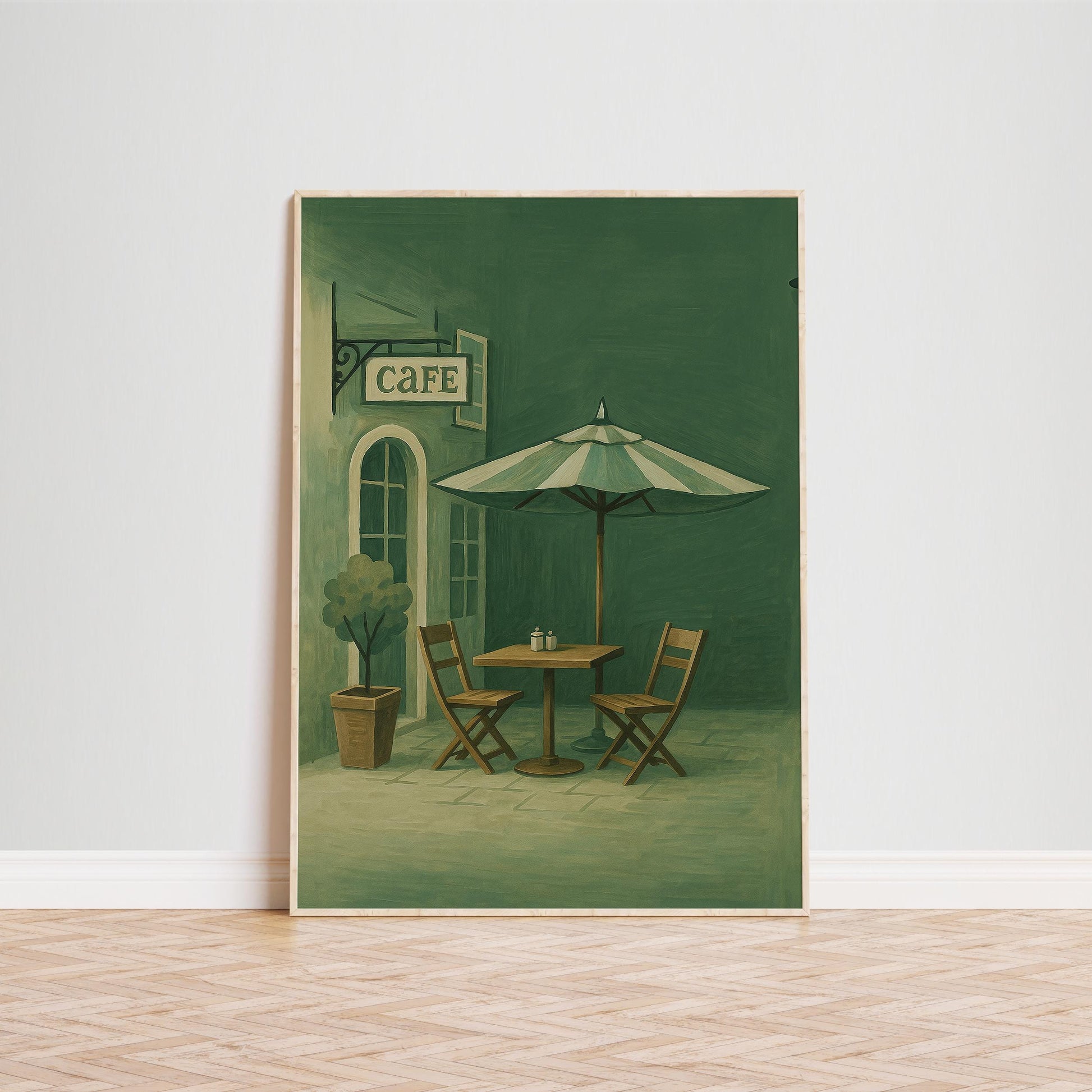 Vintage Cafe Poster – Olive Green Wall Art | French Cafe Art Print