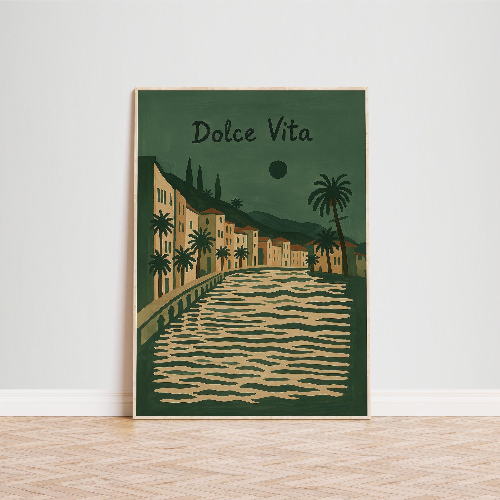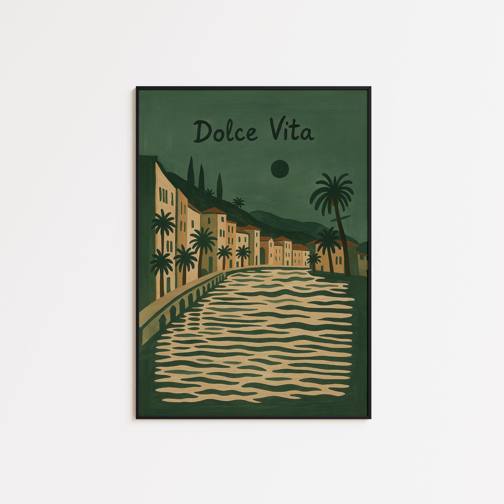 Vintage Italian Poster – Olive Green Mediterranean Wall Art | Coastal Travel Print