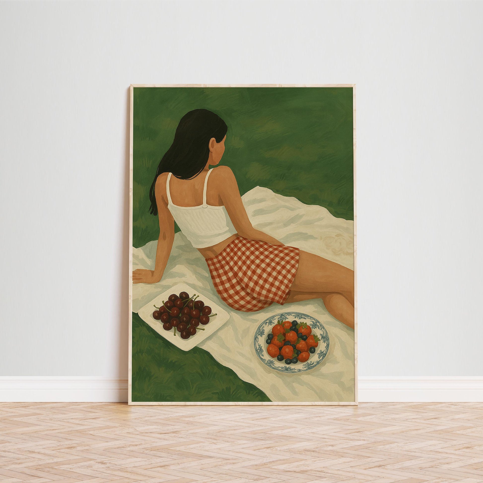 Vintage Picnic Poster – Rustic Summer Wall Art With Gingham Skirt Charm