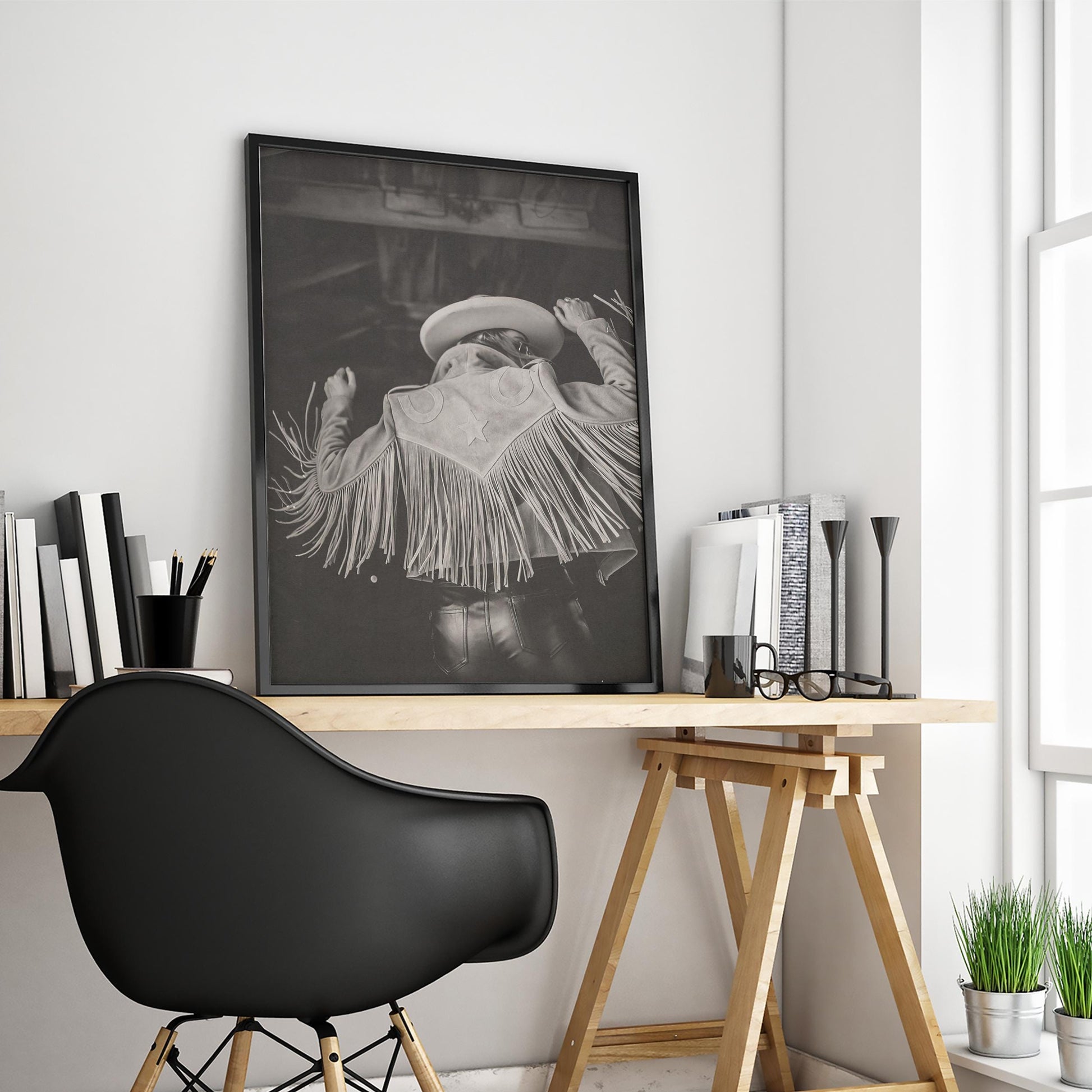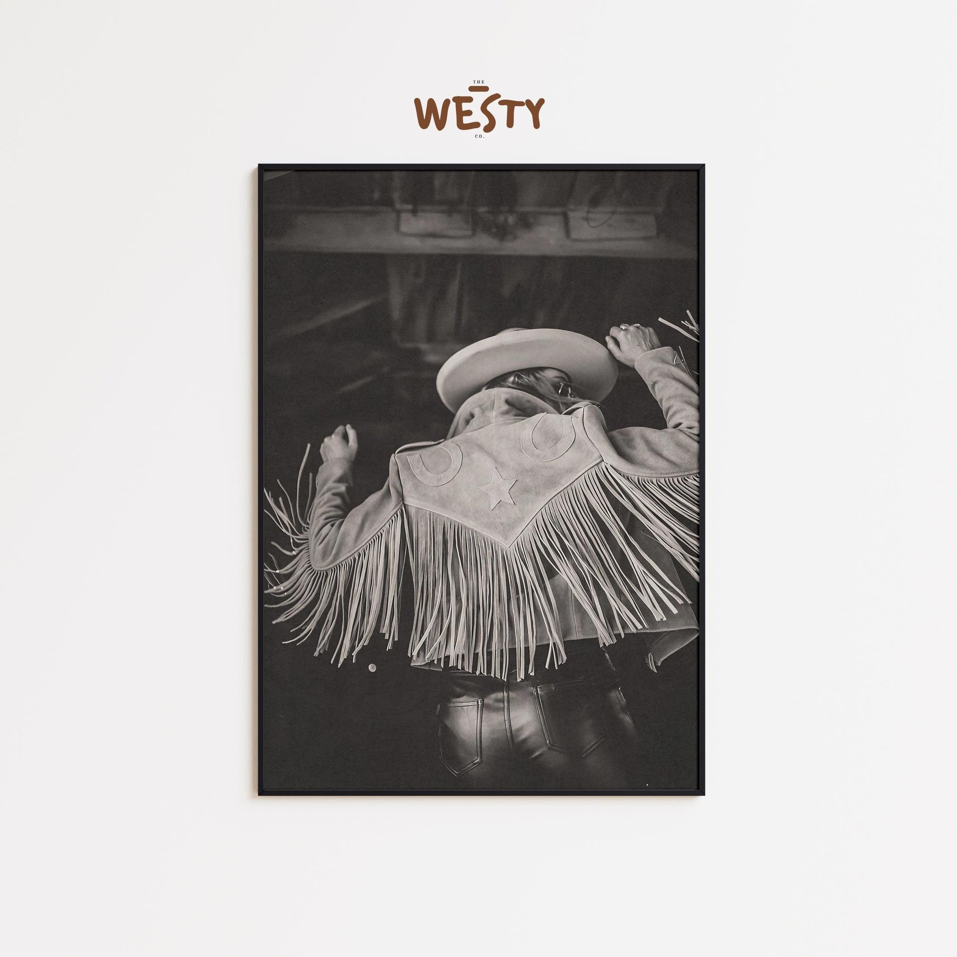 Western Fringe Star Jacket Poster – Monochrome Cowgirl Wall Art for Bold Rustic Interiors