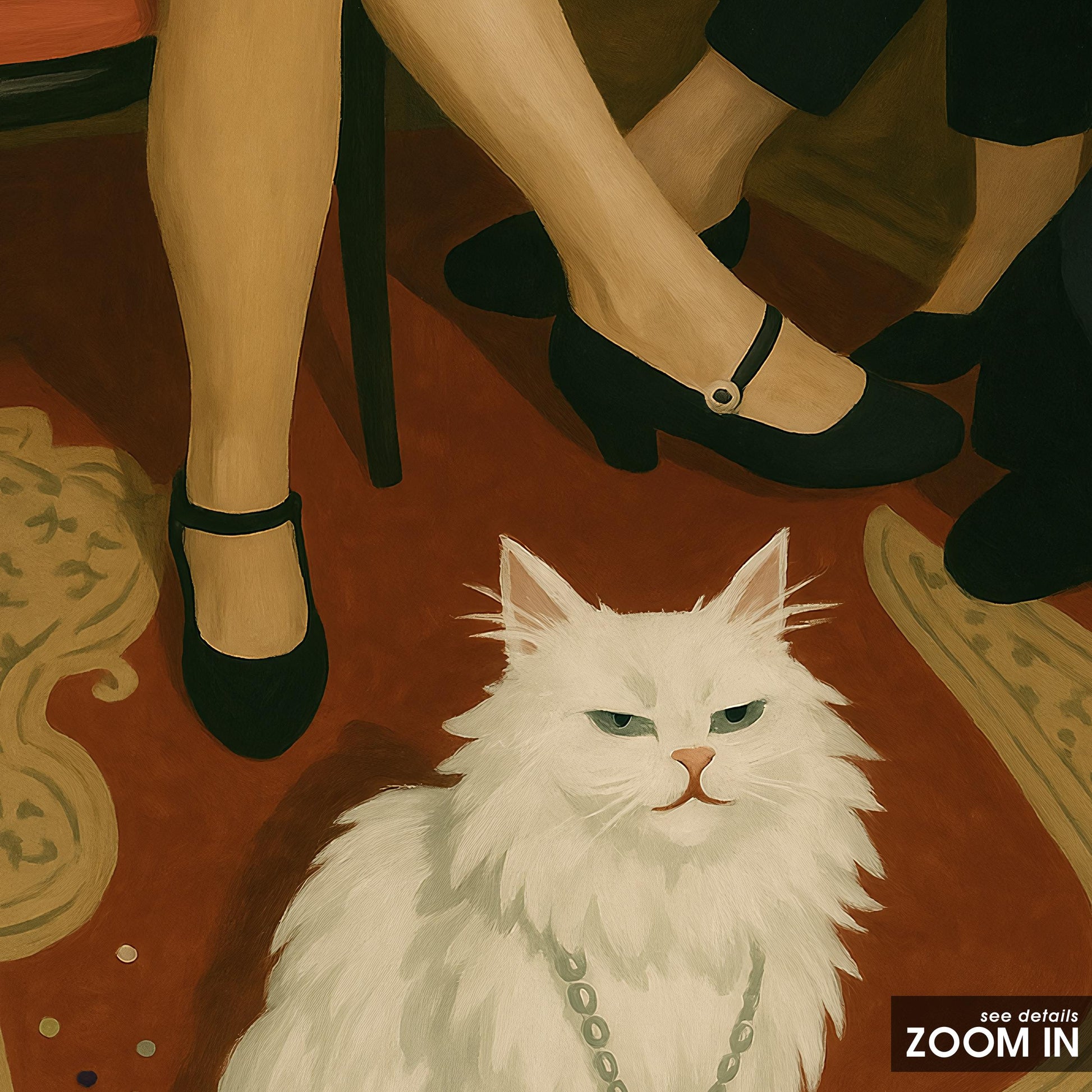 White Cat Poster – Elegant Vintage Cat Print | Chic Party Wall Art