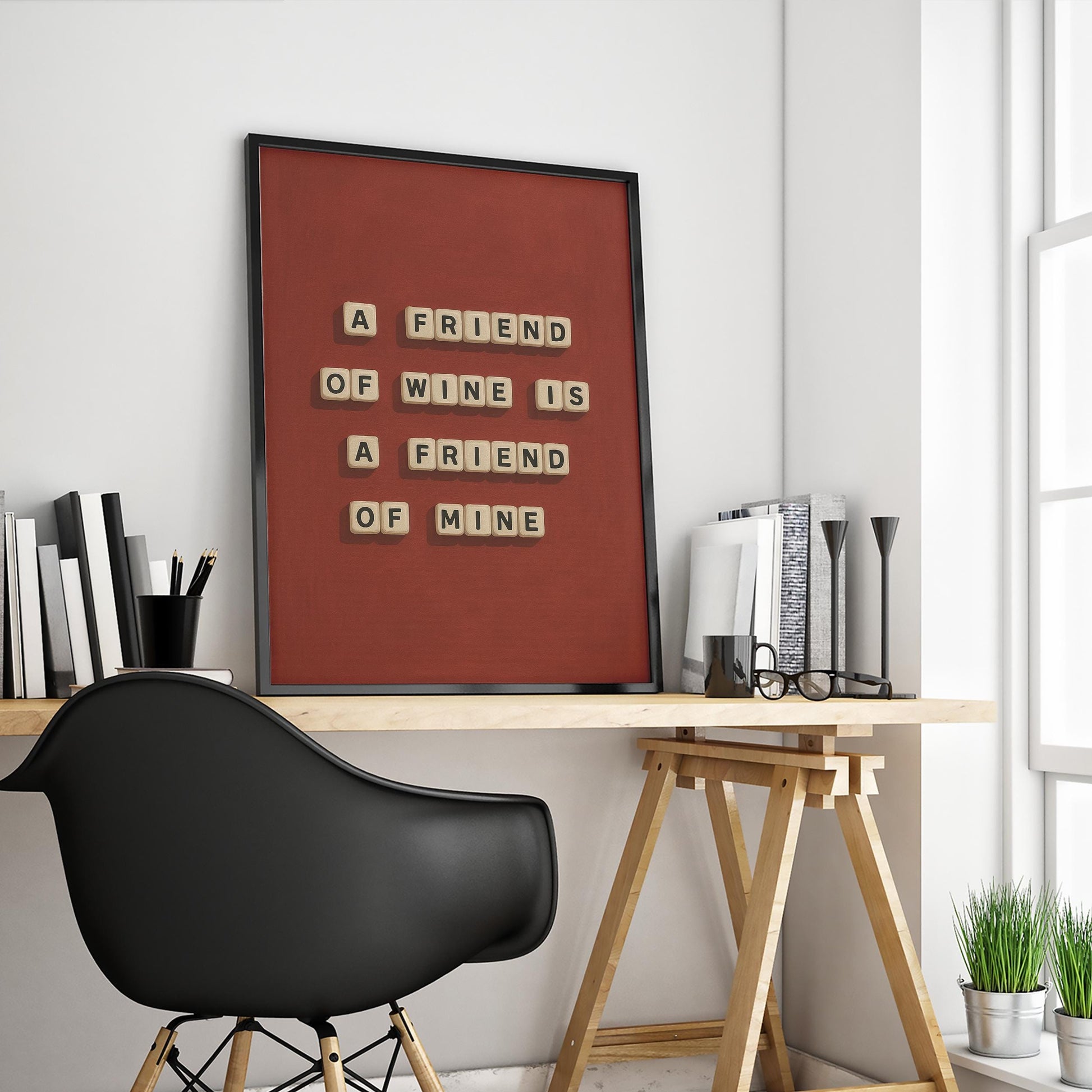 Wine Wall Art – Playful Wine Poster With Bold Typography Print For Kitchen Decor