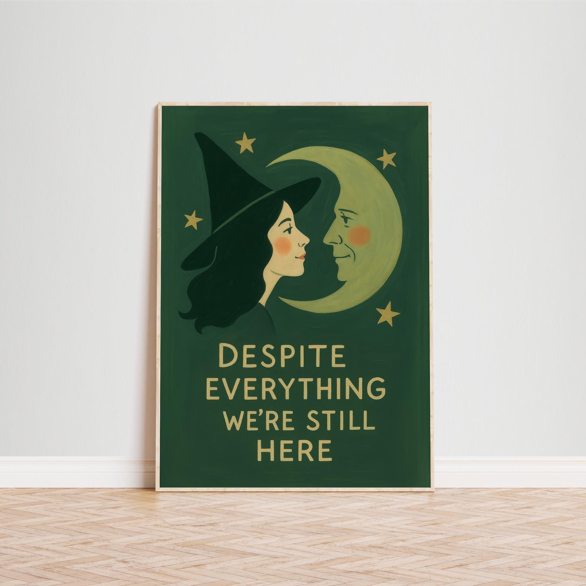 Witch Moon Poster – Celestial Wall Art With Resilience Quote and Vintage Folk Style