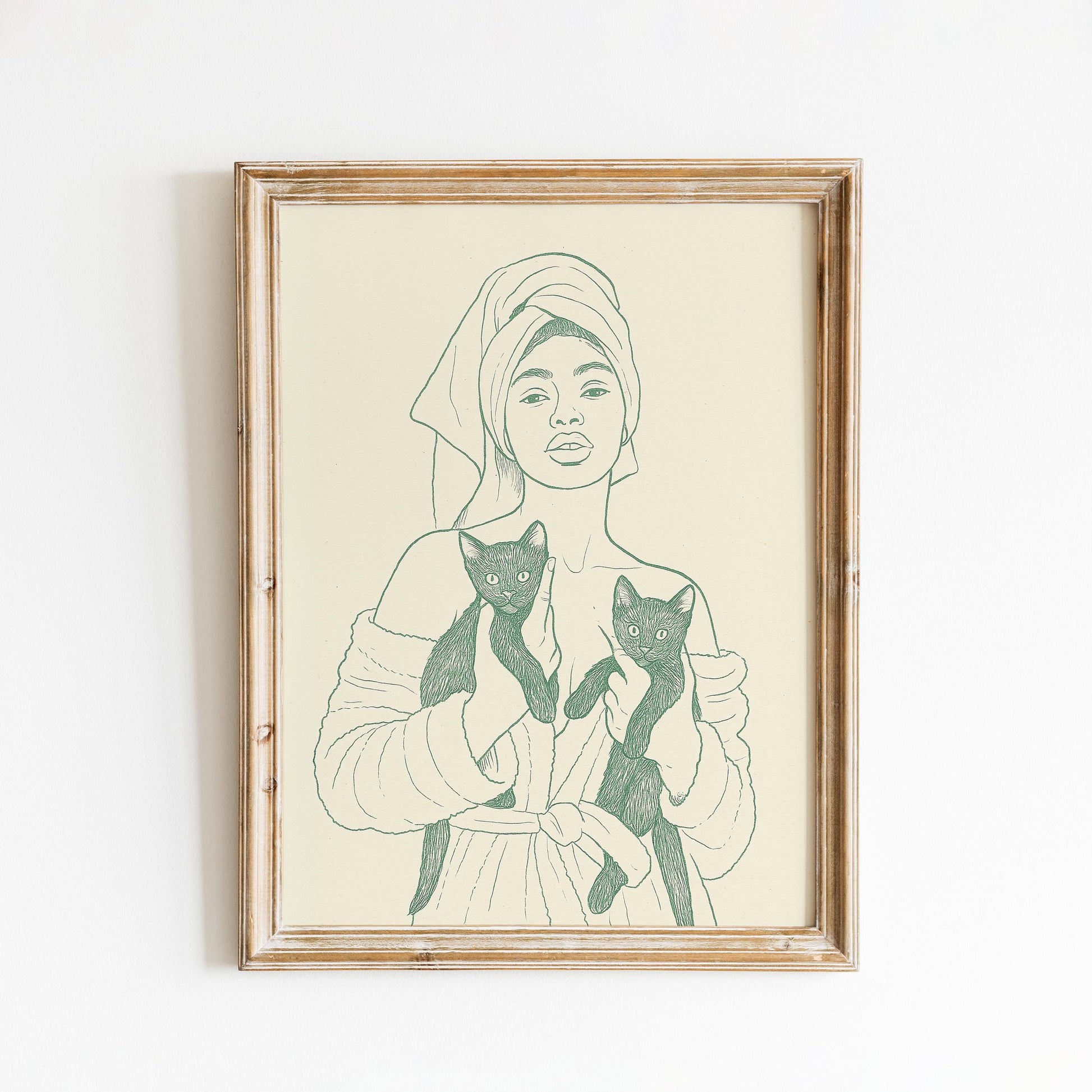 Woman with Black Cats Poster – Minimal Line Art Print, Femmaura Bold Series